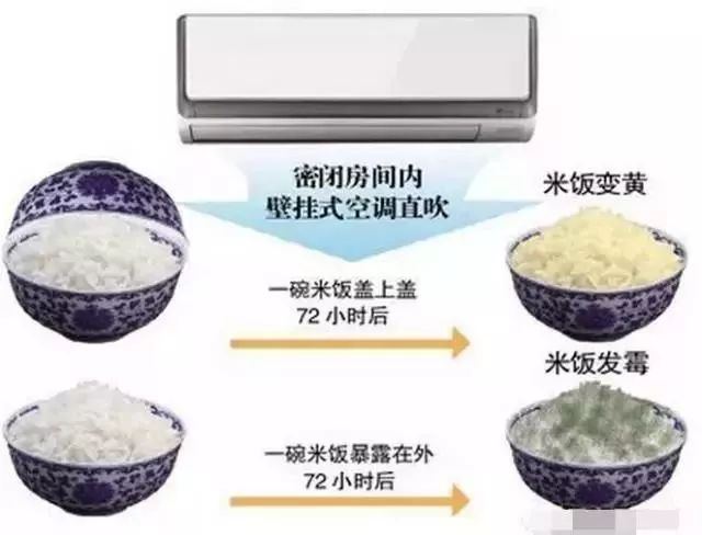 日前,中華預(yù)防醫(yī)學(xué)會消毒分會專家和家安實驗室工作人員,對空調(diào)污染進(jìn)行了一場實驗,結(jié)果令人瞠目:取兩碗等量的白米飯,置于壁掛式空調(diào)下的桌子上,其中一碗蓋好。72小時后,蓋好的米飯只是略有變色,但敞露于空調(diào)下的那碗米飯,已經(jīng)長毛,出現(xiàn)大片霉斑。