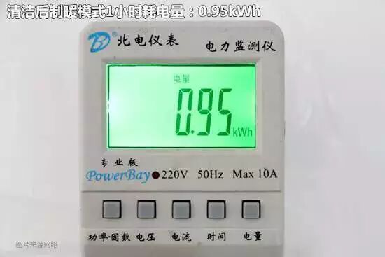 清潔后1小時0.95度的耗電量較清潔前下降了0.19度,這只是一小時的耗電量。對于家中常開的空調(diào),清潔后每一天也就是24小時將節(jié)省4.56度電。
